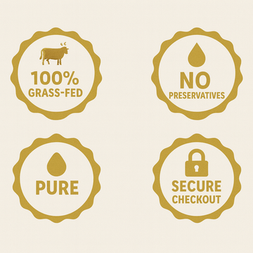 Experience the pure, golden richness of ARSS Premium Grass-Fed Ghee. Handcrafted in small batches using 100% grass-fed, pasture-raised butter, our ghee is slow-cooked to perfection for a deep golden color and rich, traditional aroma.
